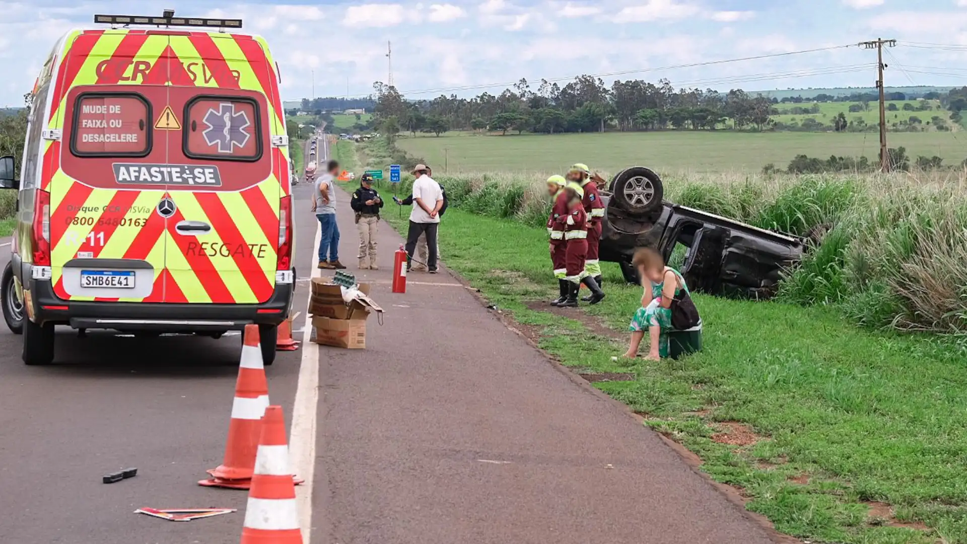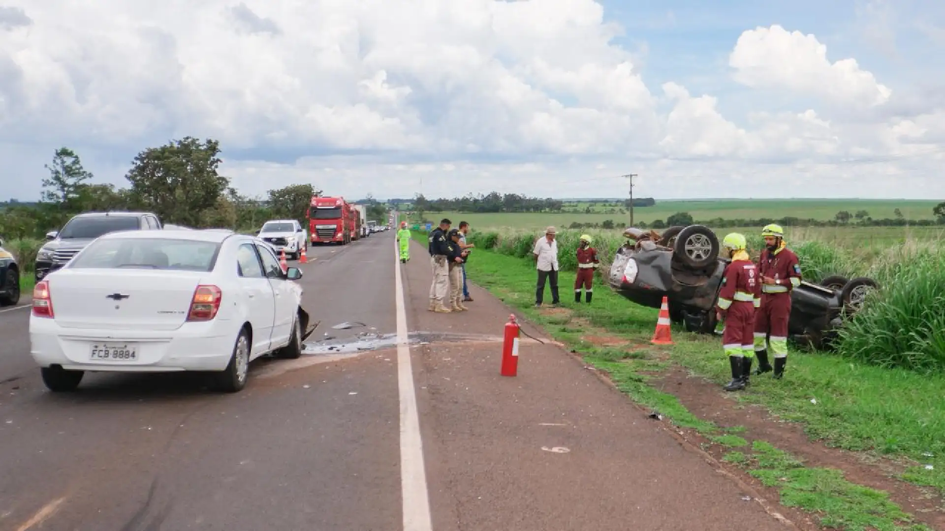 Segundo informações iniciais, a dinâmica aponta para uma colisão traseira que resultou no capotamento de um dos veículos. Um casal de idosos estava em um dos carros; apesar do susto, não sofreram ferimentos graves.